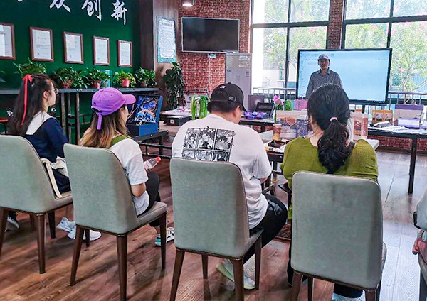 南京夢(mèng)計(jì)劃王總在宣講會(huì)上作企業(yè)介紹并且還對(duì)本公司部分作品作出詳細(xì)解說(shuō)。同學(xué)們認(rèn)真聽(tīng)講,耐心詢問(wèn)。