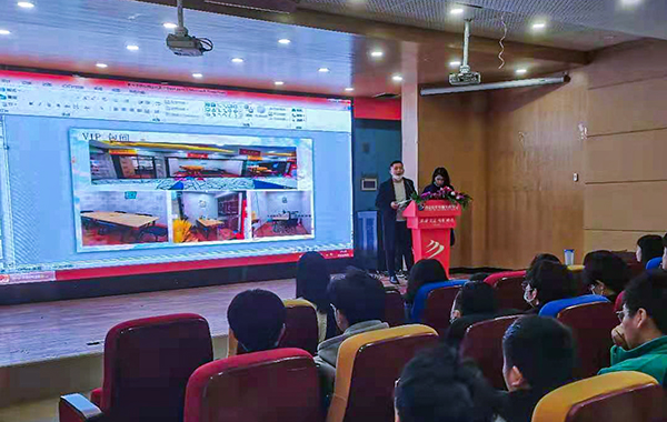 3月3日,金誠閣裝飾工程有限公司王總帶領(lǐng)行政人事,設(shè)計大咖應(yīng)邀我院邀請,為我校VR智能家居創(chuàng)意設(shè)計的學(xué)生做了一個宣講,就業(yè)辦劉主任也參與了本次活動。