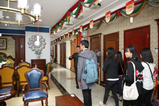 新華學(xué)子參觀魯公大宅裝飾有限公司,心中的欣喜全展現(xiàn)在笑顏中