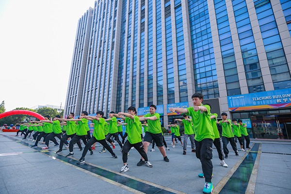 摘要 : 8月22日下午,南京新華2020年秋季新生軍訓(xùn)匯演華彩舉行。全體受閱新生身著校服,列隊(duì)接受教官和學(xué)校領(lǐng)導(dǎo)檢閱。他們昂首挺胸,口號(hào)嘹亮,展示了他們卓越的氣質(zhì)。隊(duì)列、軍體拳等表演環(huán)節(jié)更是亮出了他們?cè)谲娪?xùn)中的出色才華。
