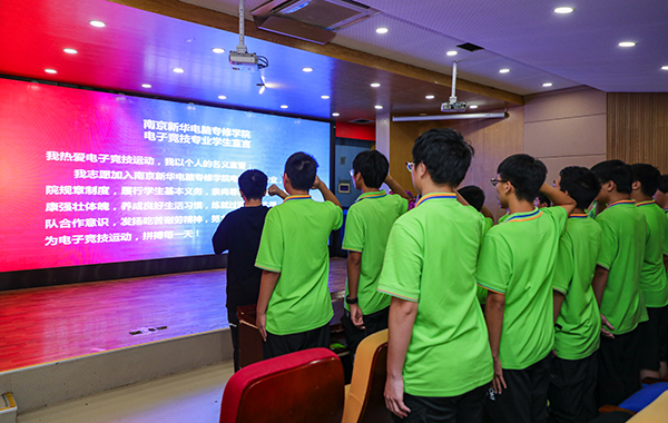 2020年8月28日,在南京新華電腦專修學院一樓報告廳電競大咖周正一老師,給同學們帶來電競專業(yè)發(fā)展講座。同時,同學們鄭重宣誓:熱愛電競運動、遵守學院制度、履行學生基本義務!