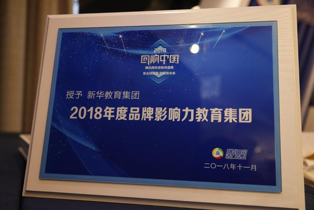 新華教育集團(tuán)榮獲騰訊“回響中國”2018年度品牌影響力教育集團(tuán)獎    11月27日下午,全國萬眾矚目的教育盛典之一,以“享全球智慧,創(chuàng)教育未來”為主題的騰訊“回響中國”2018年教育年度總評榜在中國大飯店隆重舉行。眾多教育界名人大咖齊聚一堂,百家爭鳴。