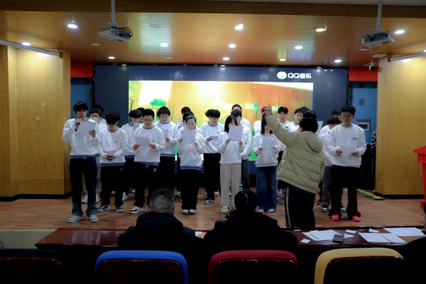 活動當(dāng)天,學(xué)校禮堂內(nèi)布置得格外喜慶和莊重。背景大屏幕上的紅色和白色圖案交相輝映,屏幕上“唱響青春旋律、綻放夢想之光”與“南京新華2025年迎新班歌大賽”字樣格外醒目,營造出了濃厚的節(jié)日氛圍。